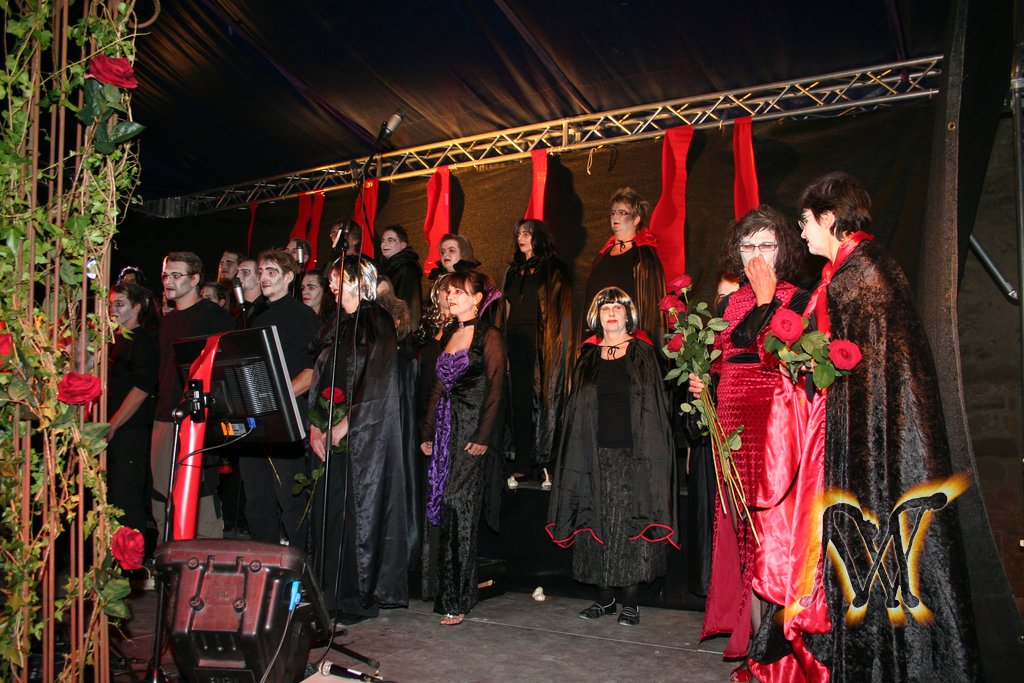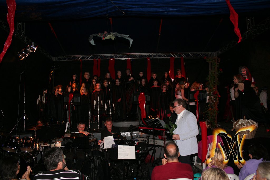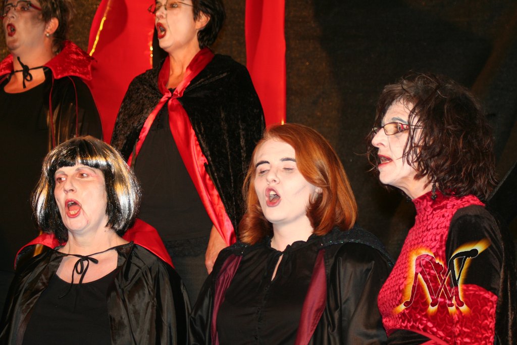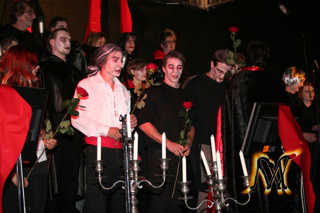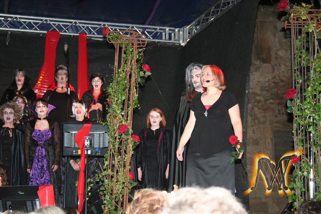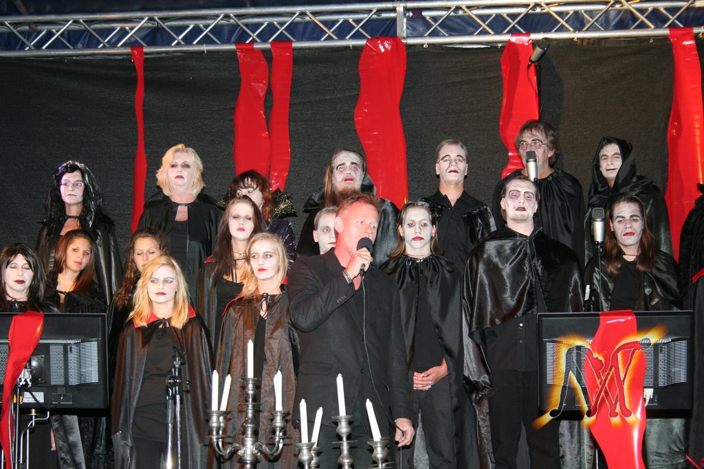 Die nötigen sicherheitstechnischen Überwachungen der Vampirgesellschaft übernimmt das Vokalensemble Sinsheim mit Stücken aus dem „Tanz der Vampire“ und vielen weiteren musikalischen Leckerbissen rund um das Thema Nacht und Blut. Es tanzt die Showdance-Formation der Tanzschule Gaby Stegmaier. Instrumentalisten sind Holger Weitz und Band. Als Gesangssolisten fungieren Viola Schuch und Marco Vilardo. Die Oberaufsicht hat Erwin Schaffer.