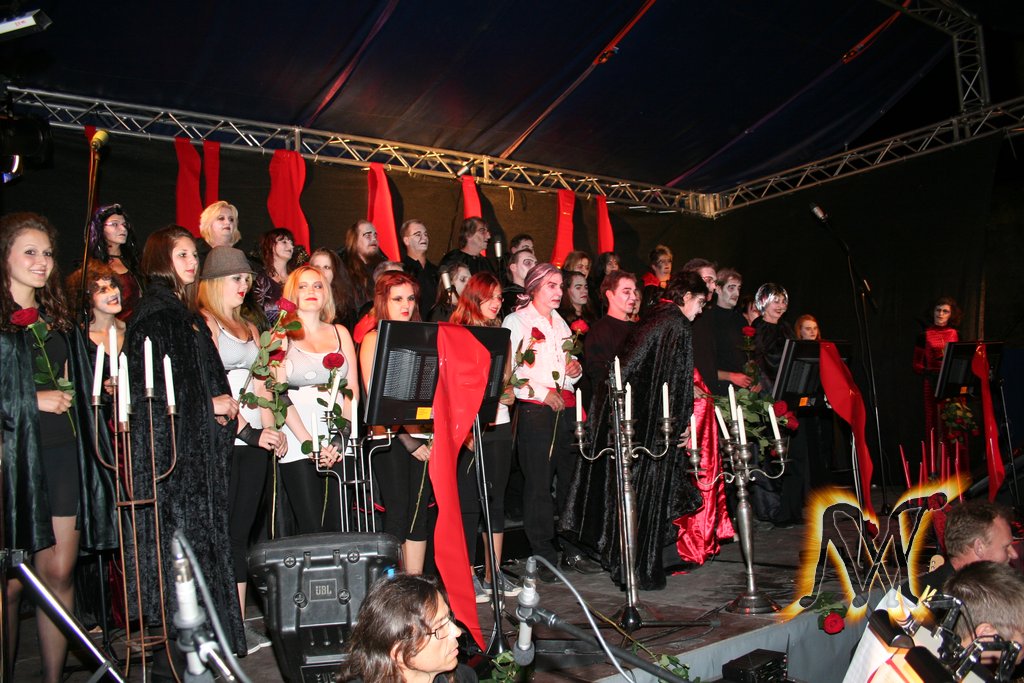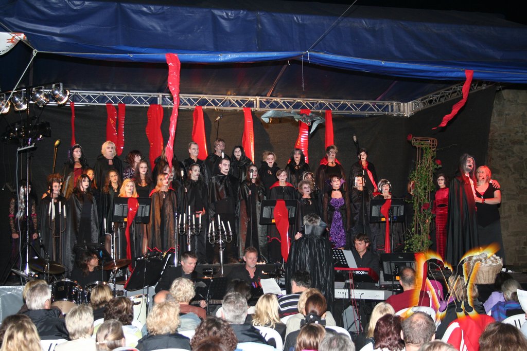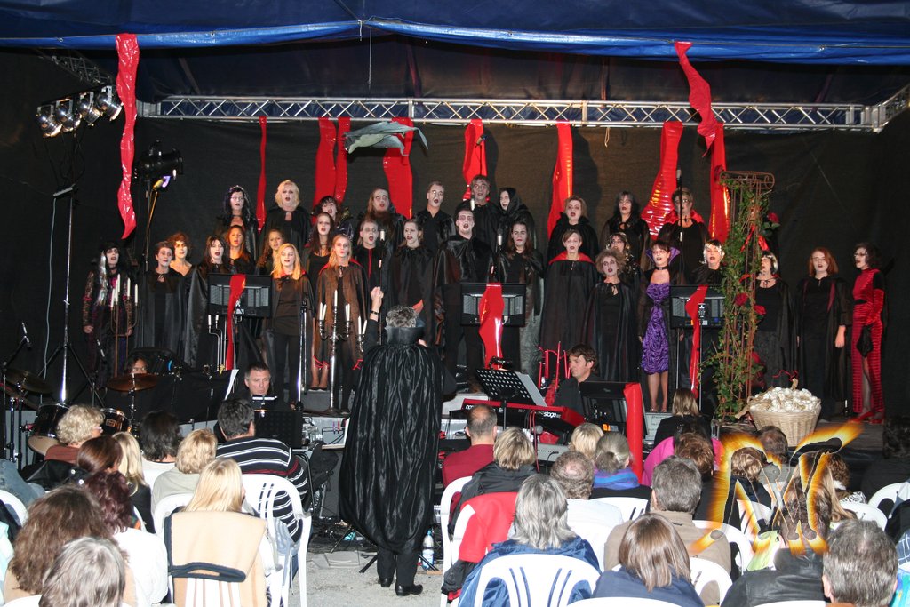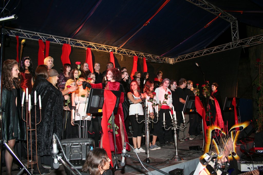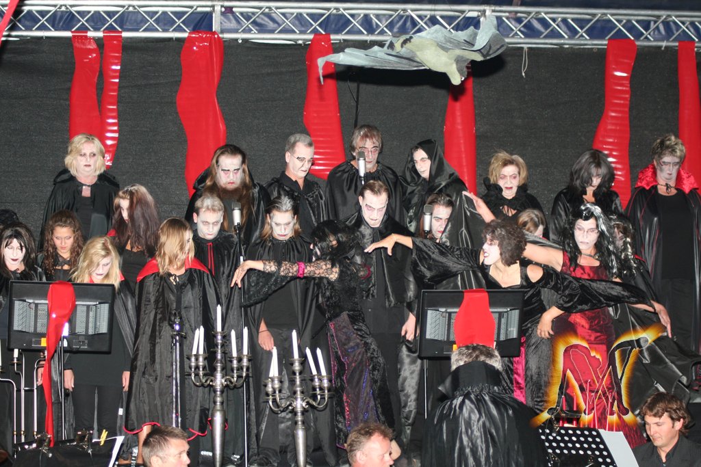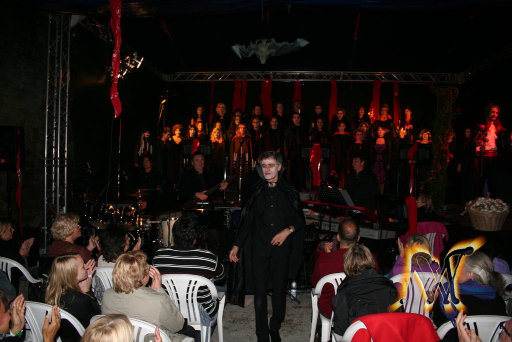 Die nötigen sicherheitstechnischen Überwachungen der Vampirgesellschaft übernimmt das Vokalensemble Sinsheim mit Stücken aus dem „Tanz der Vampire“ und vielen weiteren musikalischen Leckerbissen rund um das Thema Nacht und Blut. Es tanzt die Showdance-Formation der Tanzschule Gaby Stegmaier. Instrumentalisten sind Holger Weitz und Band. Als Gesangssolisten fungieren Viola Schuch und Marco Vilardo. Die Oberaufsicht hat Erwin Schaffer.