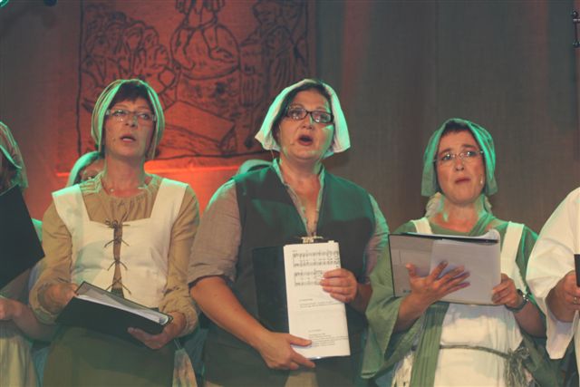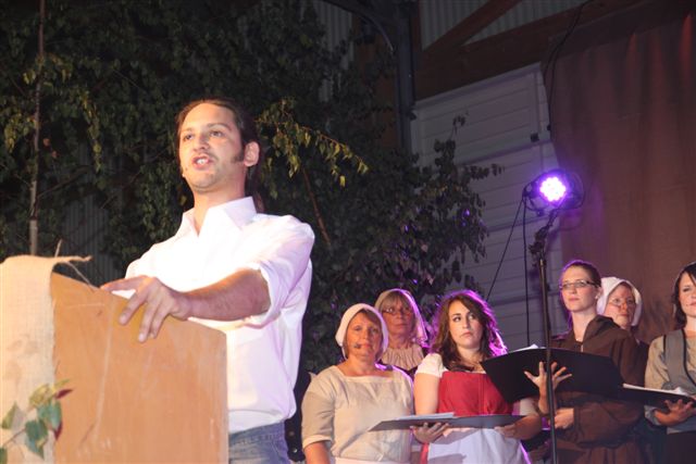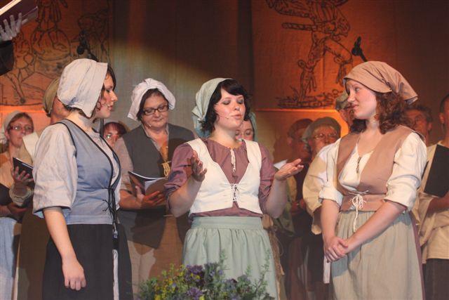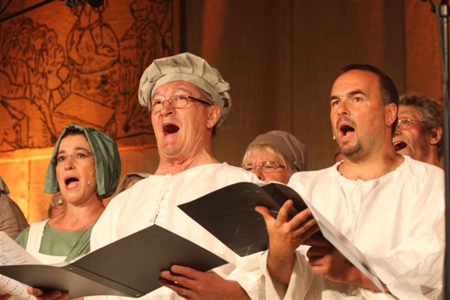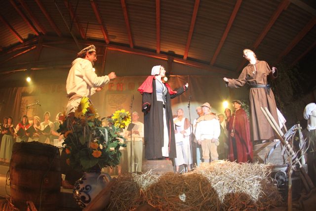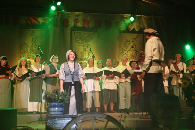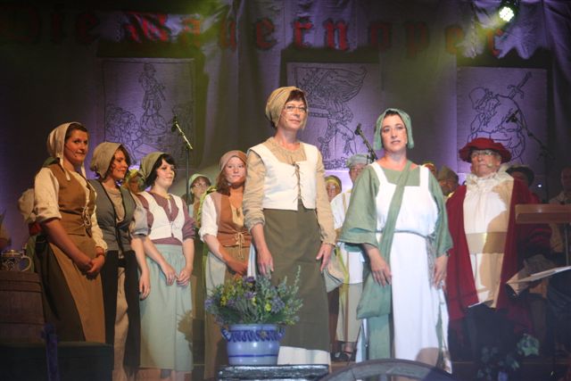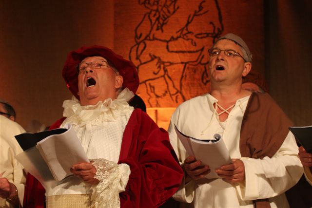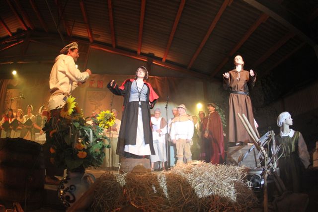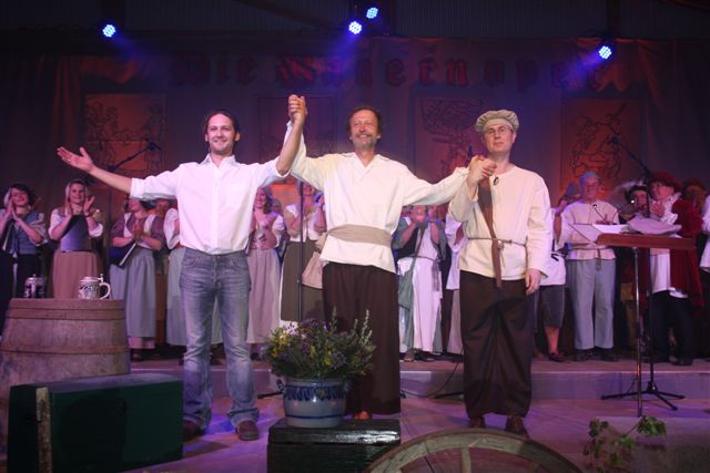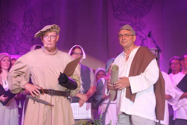 „Ein einfaches Stück über einfache Leute“, so bezeichnete Textautor Yaak Karsunke selbst „Die Bauernoper“. Das Stück, das als Auftragsarbeit für das Landestheater Tübingen entstand und dort 1973 uraufgeführt wurde, hat zum Ziel, die Geschichte der einfachen Leute des Jahres 1525 aus ihrer Sicht zu erzählen. Im Rahmen des Ortsjubiläums „850 Jahre Hambrücken“ führt der Projektchor des Gesangvereins „Eintracht“ Hambrücken „Die Bauernoper“ am 8. und 9. Juli um 20 Uhr auf dem Gelände des Spargelhofes Simianer (Aussiedlerhof, Ortsausgang Hambrücken Richtung Wiesental) auf. Für die Umsetzung des Spektakels, das in den 70er Jahren auch von der Badischen Landesbühne Bruchsal mit großem Erfolg auf die Bühne gebracht wurde, hat Dirigent Peter Ribnitzky das Stück für Favoritchor, gemischten Chor, Männerchor und Solisten bearbeitet, die einzelnen Songs in eine Reihenfolge gebracht und mit Texten verbunden. In Hambrücken werden über 60 Sängerinnen und Sänger der „Eintracht“ aktiv mitwirken. „Alle Solisten und Chormitglieder wurden aus den eigenen Reihen besetzt“, so der engagierte Hambrückener  Chorleiter. Die Rolle des Erzählers hat Marco Vilardo aus Bruchsal, bekannt als stimmgewaltiger Frontmann der Gruppe FÖN, inne. Am Klavier agiert der Stettfelder Musiklehrer Stefan Fuchs. „Die Bauernoper“ ist ein Musical mit Szenen und Liedern aus dem fränkisch-schwäbischen Bauerkrieg und beschreibt die Situation um das Jahr 1500, als in Deutschland etwa 12 Millionen Menschen lebten. Drei Viertel von ihnen sind Bauern, meist Hörige oder Leibeigene. Böden und Bauern gehören geistlichen und weltlichen Feudalherren. Die Erbfolge zersplittert die Höfe, die Abgaben ruinieren die Bauern. Der aus dem diesem Massenelend resultierende Bauernkrieg von 1525, die „erste radikaldemokratische Volkserhebung in Deutschland“ (Karsunke) und ihr Scheitern sind nun Thema der Inszenierung. Bei der damaligen Aufführung in Bruchsal wurden die Vorgänge im Nordbadischen Raum stärker einbezogen und behandelten auch Joß Fritz, Initiator der Bundschuh-Bewegung in Untergrombach. Peter Ribnitzky: „Jetzt wird den Besuchern eindringlich, manchmal amüsant, oftmals jedoch in erschütternder Weise nahe gebracht, was ihren Vorfahren vor fast 500 Jahren widerfuhr und was sich hier in unserer unmittelbaren Umgebung ereignete“. Die Bauernoper erzählt die Geschichte einer großen Hoffnung und die einer brutalen Niederlage. Sie erzählt aus der Sicht der Geschlagenen, Gefolterten und Geschändeten, der über 100 000 Toten durch Kampf und Hinrichtung. Der Autor wollte den „Geburtsfehler des deutschen Geschichtsdramas, Drama der großen Männer zu sein“, überwinden. Es entstand ein Stück, in dem es keine dominante Figur gibt, sondern eine Reihe bunter, geschichtlicher Szenen, in denen die Vorfahren aller Schichten vertreten sind. Dabei wechseln Spielszenen, Kommentare und Lieder einander ab. Die mitreißenden Songs und Melodien, die dem Stück stellenweise den Charakter einer Revue geben, hat Peter Jannsen komponiert.