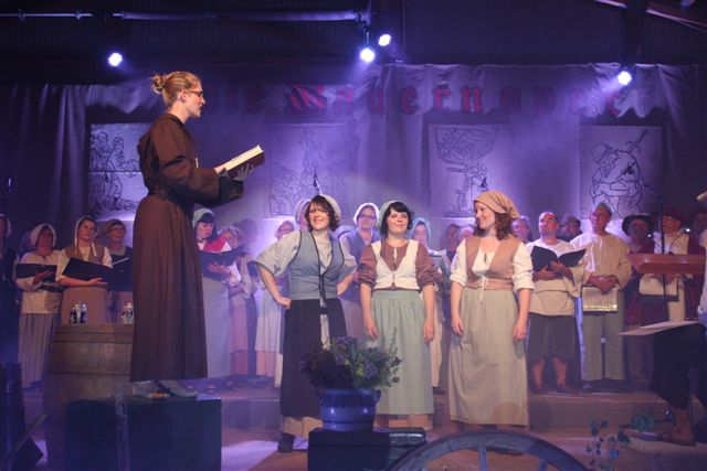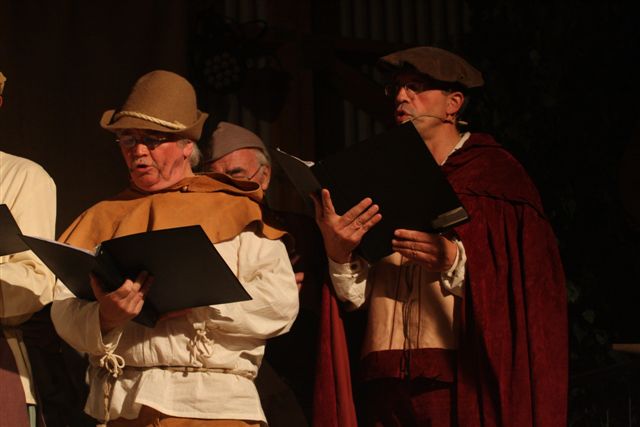 Das Bild zeigt eine „Bauernoper“- Probe-Szene des Projektchores des Gesangvereins „Eintracht“ Hambrücken.